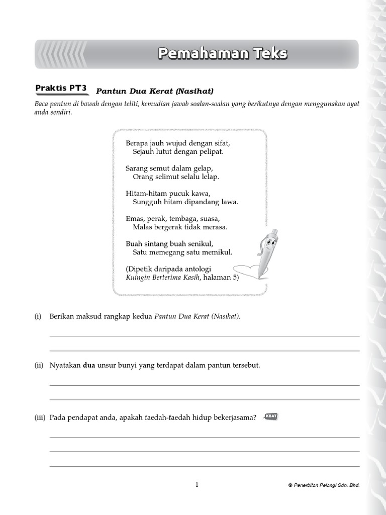 Contoh Soalan Pemahaman Bahasa Melayu Tingkatan 4 Soalan Akhir Tahun Bahasa Melayu Tingkatan 1 E Perkhidmatan. Antologi Jaket Kulit Kijang dari Istanb. View flipping ebook version of BAHASA MELAYU STANDARD TINGKATAN 5 published by norafizahmohdsom on 2021-09-24.